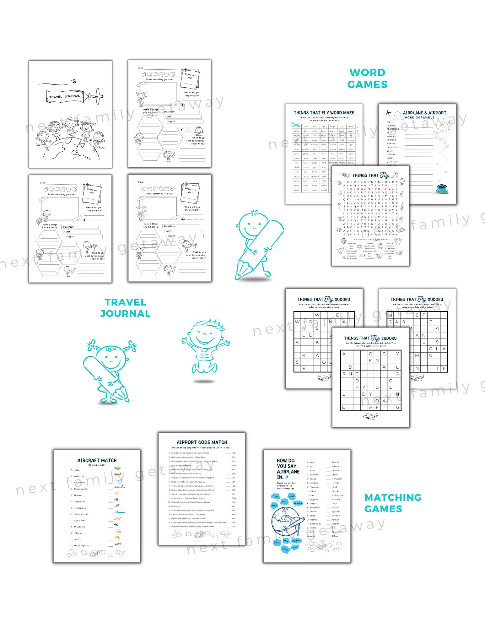 Printable Airplane Activities Book for Kids. 50 Pages. Digital